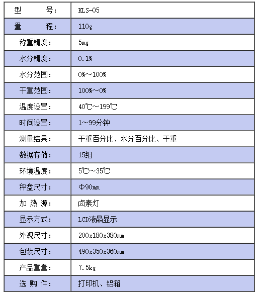 鹵素水分測(cè)定儀KLS-05