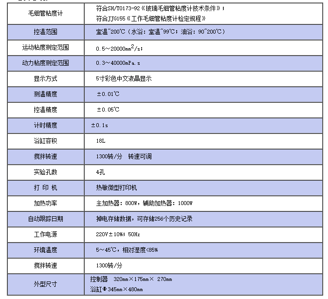 儀器符合GB/T265標(biāo)準(zhǔn),也適用GB1841標(biāo)準(zhǔn)所規(guī)定的塑料樹脂等其他產(chǎn)品的運(yùn)動(dòng)粘度。儀器采用先進(jìn)的單片機(jī)、彩色中文液晶顯示,溫度控制準(zhǔn)確、精度高,自動(dòng)計(jì)時(shí)、自動(dòng)計(jì)算運(yùn)動(dòng)粘度和動(dòng)力粘度、自動(dòng)打印測(cè)定結(jié)果,外形結(jié)果新穎,是一款國(guó)內(nèi)較先進(jìn)的運(yùn)動(dòng)粘度測(cè)定儀。